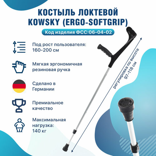 Костыли медицинские Kowsky особенности модели Ergo-Softgrip: Производство: Германия, Kowsky GmbH & Co. KG - это ведущий немецкий производитель тростей, костылей под локоть (канадок) и ортопедических средств реабилитации.