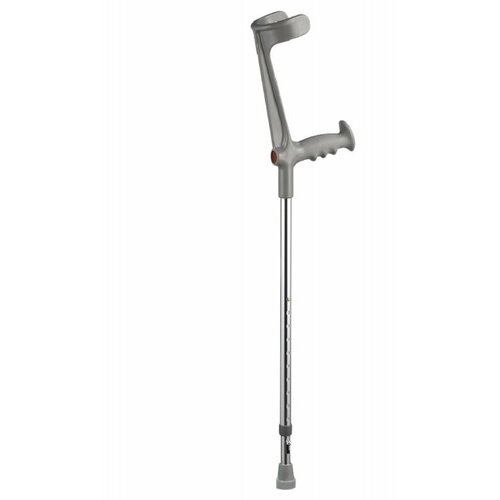 Костыль с опорой под локоть. Легкий, прочный алюминиевый сплав, имеет анатомическую рукоятку из нескользящего материала с опорой для большого пальца и стопором, предотвращающим соскальзывание вперед, прочная фиксация резинового наконечника, снабжен устройством против скольжения, регулируемая высота - от 89 до 112 см с шагом 2,5 см, вес изделия - 0,9 кг, максимальная нагрузка - 150 кг.