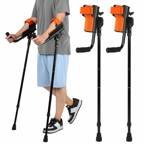 Эргономичные костыли для предплечья: Опора локтя поддерживает регулировку на 90°, а гравитация распределяется через несколько точек опоры предплечья, чтобы уменьшить давление на подмышки. Удобнее, чем другие костыли на рынке. Ремни на предплечье повышают безопасность, позволяя пользователю чувствовать себя спокойно при ходьбе и снижая вероятность несчастных случаев.