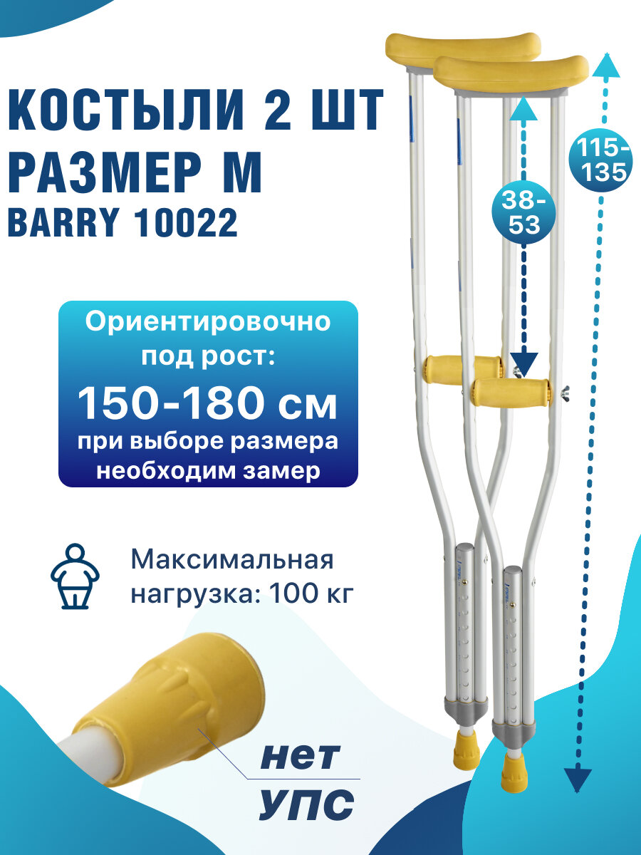 Костыли подмышечные для взрослых и подростков, под рост 150-180 см, алюминиевые, до 100 кг, Barry 10022 (M): сравнение цен, характеристики, фото, актуальное наличие и цены.