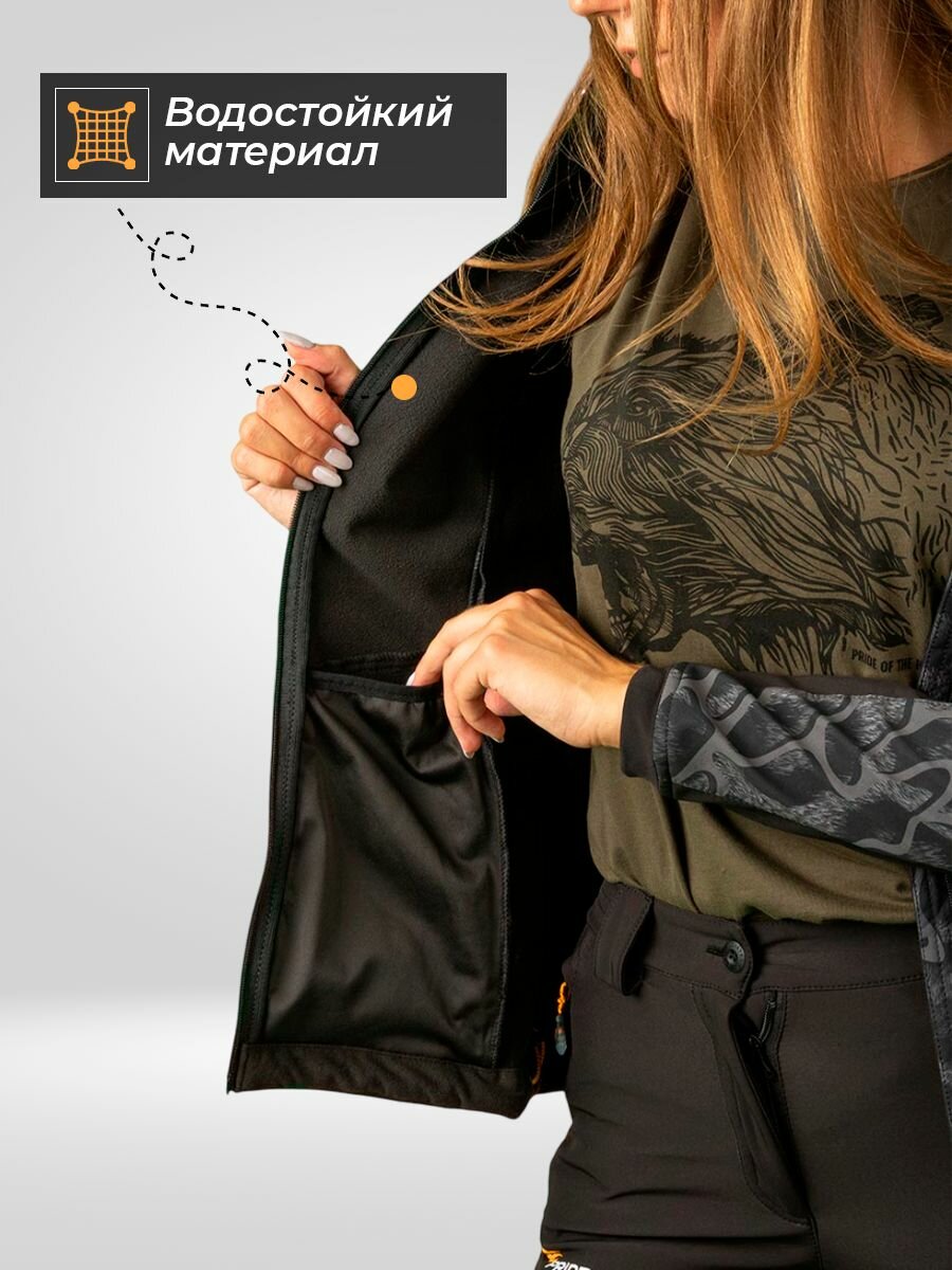 Купить Костюм женский демисезонный охотничий утепленный с капюшоном и ушками Багира софт-шелл с доставкой по всей России.