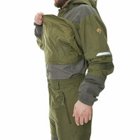 удлиненная куртка клапаны-ловушки для насекомых противоклещевая "юбка" по низу куртки влагозащитный карман для документов сетка для защиты лица от насекомых, которая убирается в потайной карман внутренние манжеты на рукавах и по низу брюк светоотражающая печать Материал: верх: cotton peach состав: 75% хлопок, 25% нейлон плотность: 160 г/м2; рукава: с манжетами; штаны: с манжетами; карманы: на молнии; капюшон: регулируемый; воротник: на молнии; ширинка: на молнии