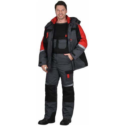 Костюм «Фаворит-Мега»: зимний куртка длинная, полукомбинезон, темно-серый с черным и красным р. 60-62/182-188 / Костюм рабочий мужской / Костюм рабочий