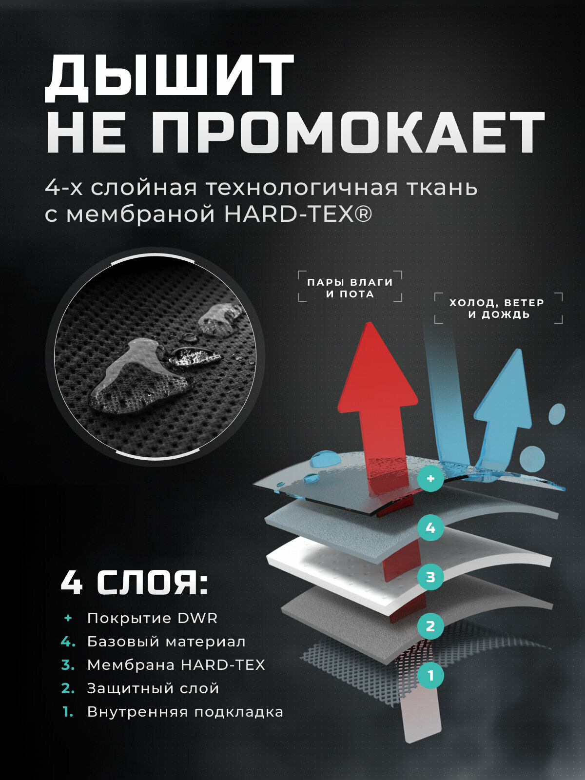 | Дополнительная информация | Уникальный анатомический крой Комфорт и надёжность Износостойкая ткань с мембраной HARD-TEX Уязвимые места, область колен и седалища, внутренняя и нижняя часть штанин оснащены дополнительным усилением из сверхпрочного материала Cordura Швы герметично проклеены Капюшон с регулировкой объёма в двух плоскостях Вентиляция с защитной сеткой Регулировкой объёма талии Снегозащитная юбка Петля для наушников Манжеты из лайкры с отверстием для большого пальца Два объёмных боковых кармана Два нагрудных кармана на молнии, один внутренний карман на молнии и одним объёмный внутренний карман из сетки; рукава: с вентиляцией; штаны: с карманами для вкладышей; капюшон: с козырьком; активность: высокая; ширинка: на молнии; Минимальная температура: –25° |