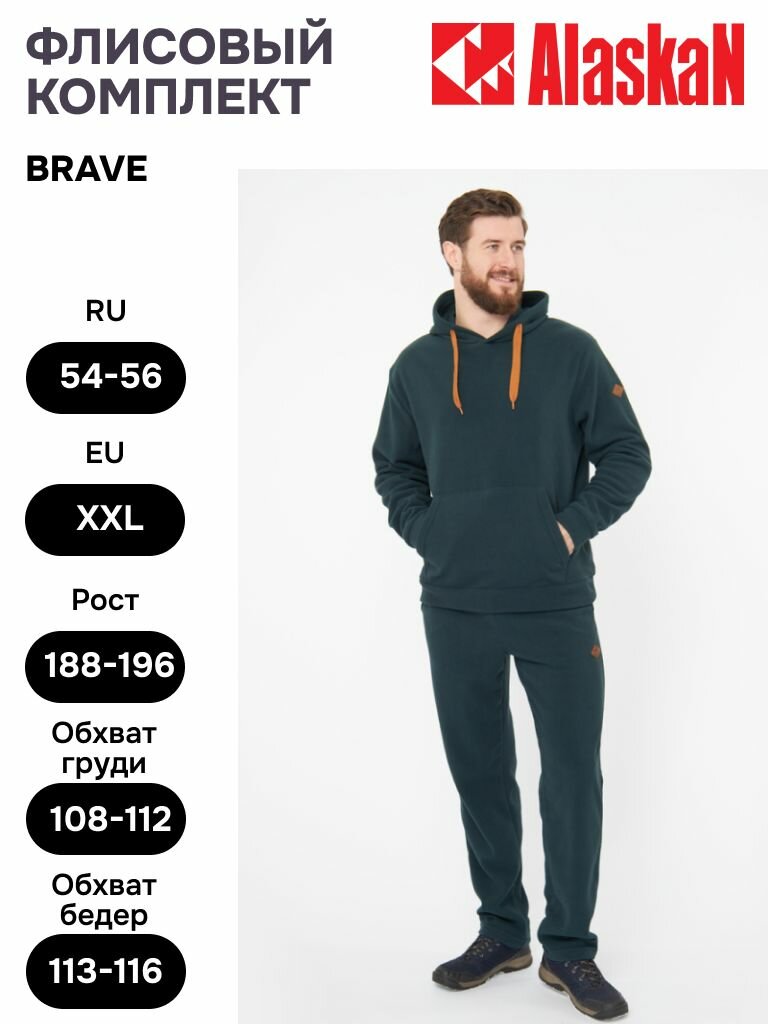 Костюм флисовый мужской Alaskan Brave, темно-зеленый XXL, костюм для рыбалки