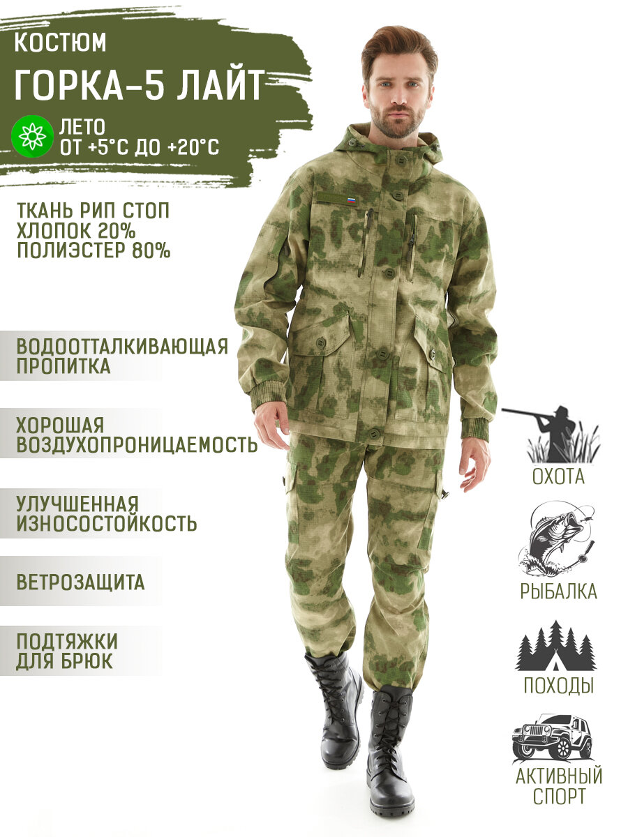 Купить Костюм Huntgorka, Горка 5 Rip-Stop Лайт, Тактический, Туристический, Летний с доставкой по всей России.