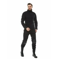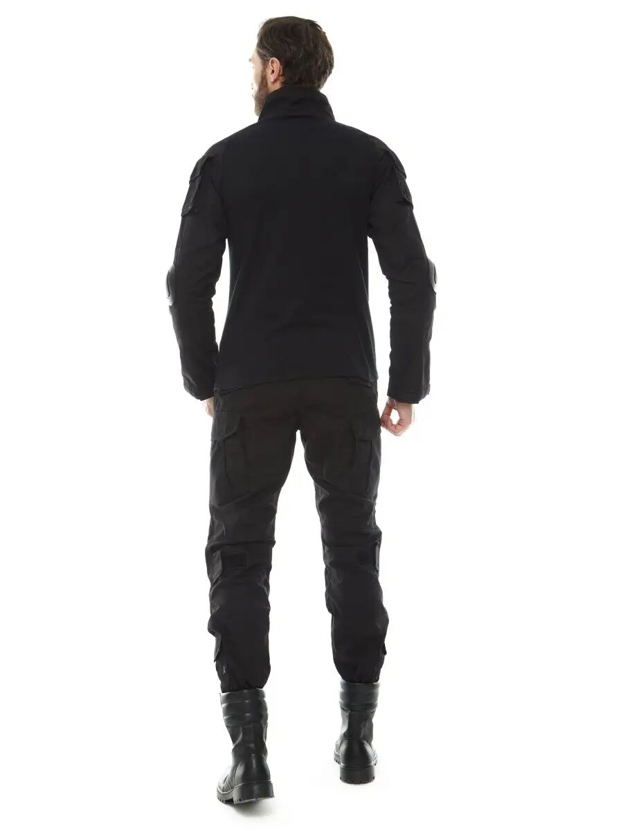 Костюм состоит из рубашки и брюк, а также включает защиту локтей и коленей. Рубашка выполнена из прочной смесовой ткани (65% хлопок, 35% полиэстер, плотность 220 гр/кв. м.), а центральная часть рубашки - из трикотажа (95% полиэстер, 5% эластан, 250 гр/кв. м.). Брюки изготовлены из прочной смесовой ткани, а на локтевой и коленной части предусмотрены карманы.