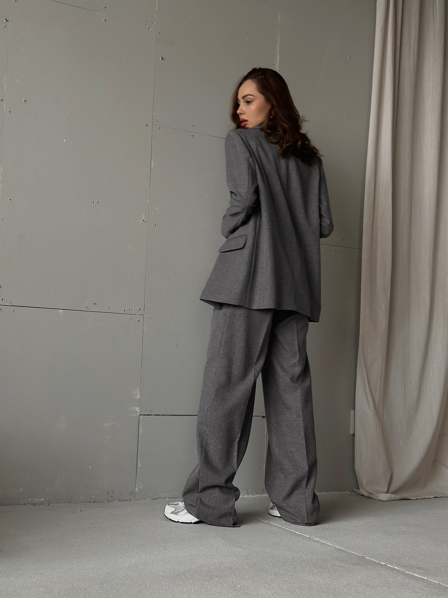 Купить Костюм классический MATRESHKA_LOVE Комплект классический женский, брюки палаццо, деловой офисный стиль, пиджак удлиненный, оверсайз, размер 42, серый меланж с доставкой по всей России.