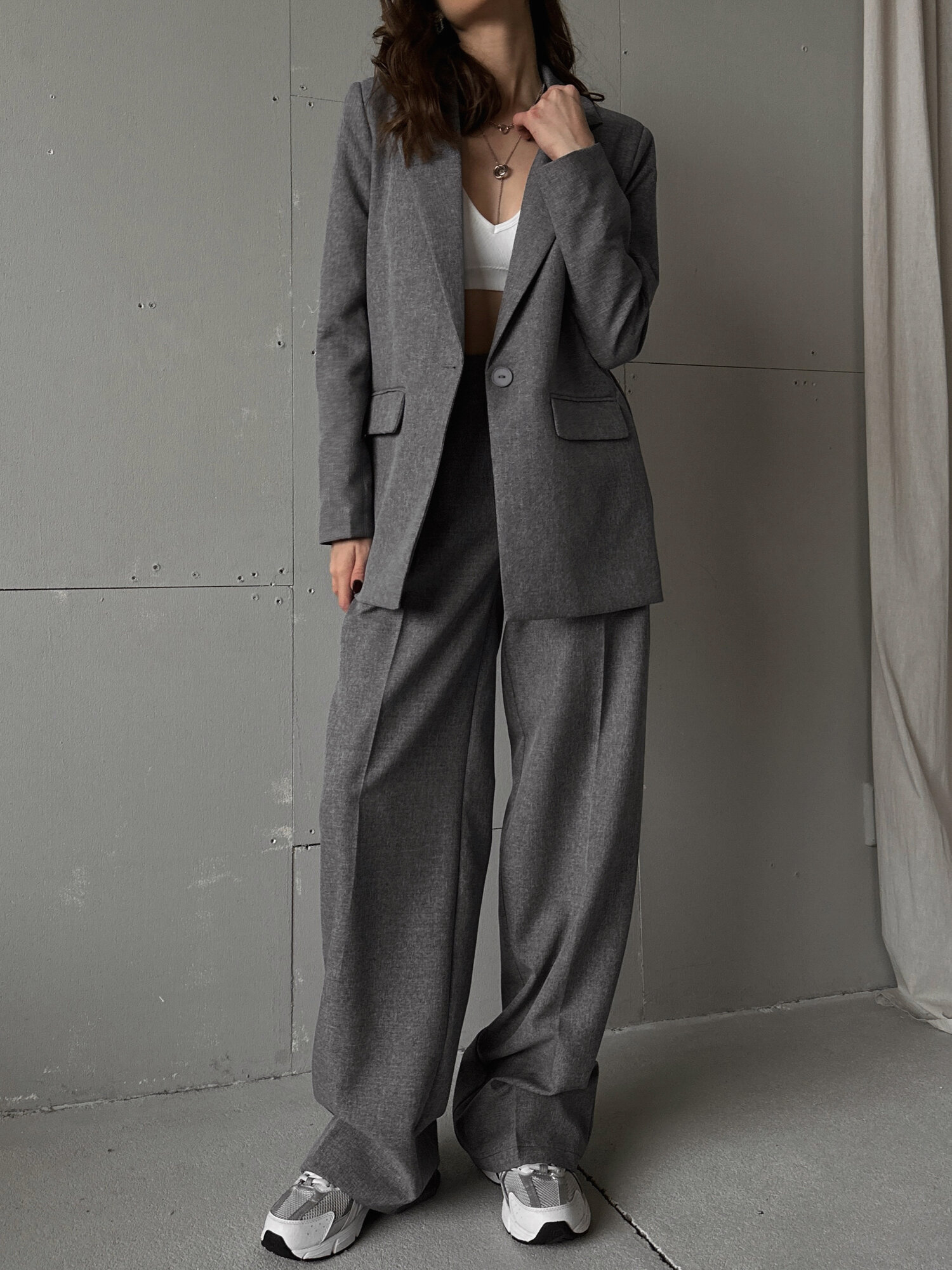 Костюм классический MATRESHKA_LOVE Комплект классический женский, брюки палаццо, деловой офисный стиль, пиджак удлиненный, оверсайз, размер 42, серый меланж: сравнение цен, характеристики, фото, актуальное наличие и цены.