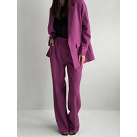 Купить Костюм классический MATRESHKA_LOVE Комплект классический женский, брюки палаццо, деловой офисный стиль, пиджак удлиненный, оверсайз, размер 50, фиалковый с доставкой по всей России.