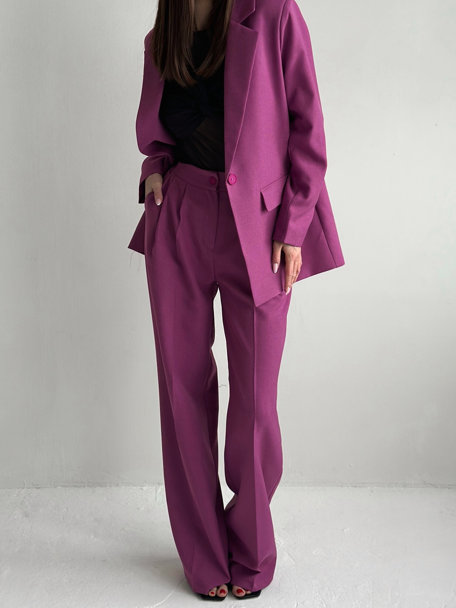 Костюм классический MATRESHKA_LOVE Комплект классический женский, брюки палаццо, деловой офисный стиль, пиджак удлиненный, оверсайз, размер 50, фиалковый: сравнение цен, характеристики, фото, актуальное наличие и цены.