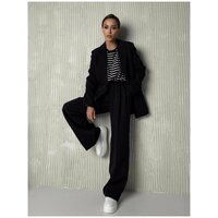 Купить Костюм классический MATRESHKA_LOVE Комплект классический женский, с брюками палаццо,деловой стиль, пиджак удлиненный, оверсайз, размер 50, черный с доставкой по всей России.