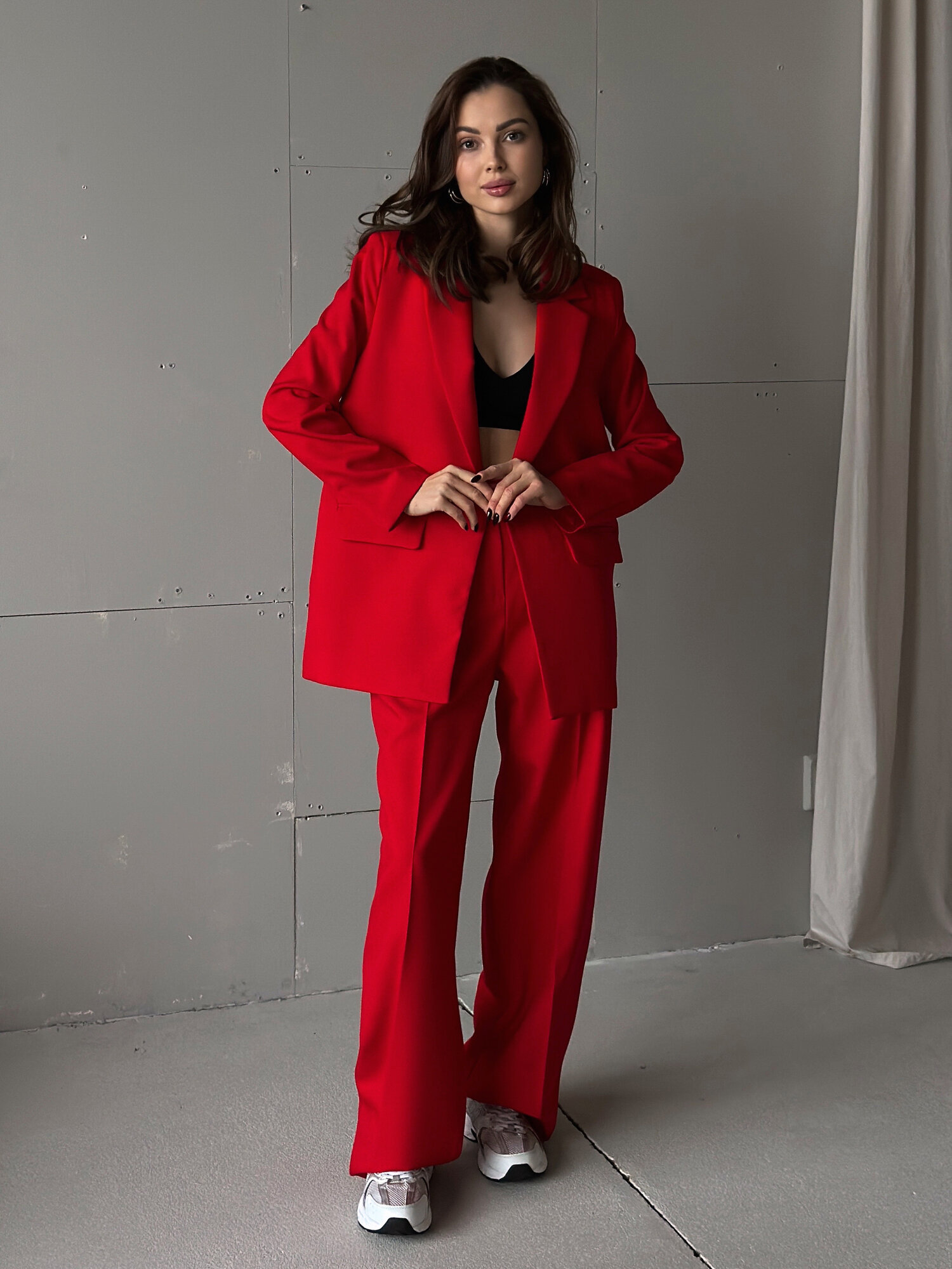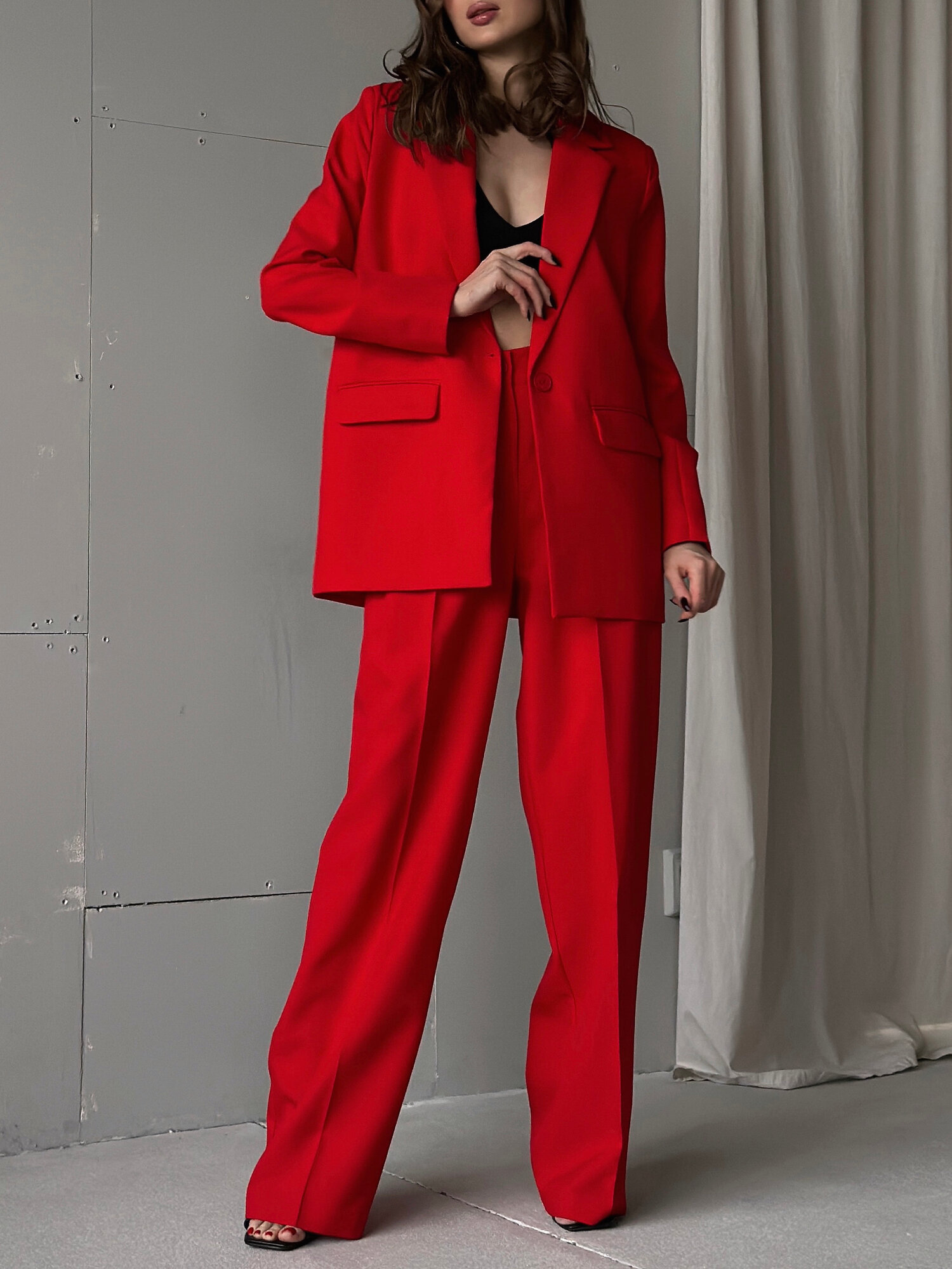 Купить Костюм классический MATRESHKA_LOVE Комплект классический женский, брюки палаццо, деловой офисный стиль, пиджак удлиненный, оверсайз, размер 50, красный с доставкой по всей России.
