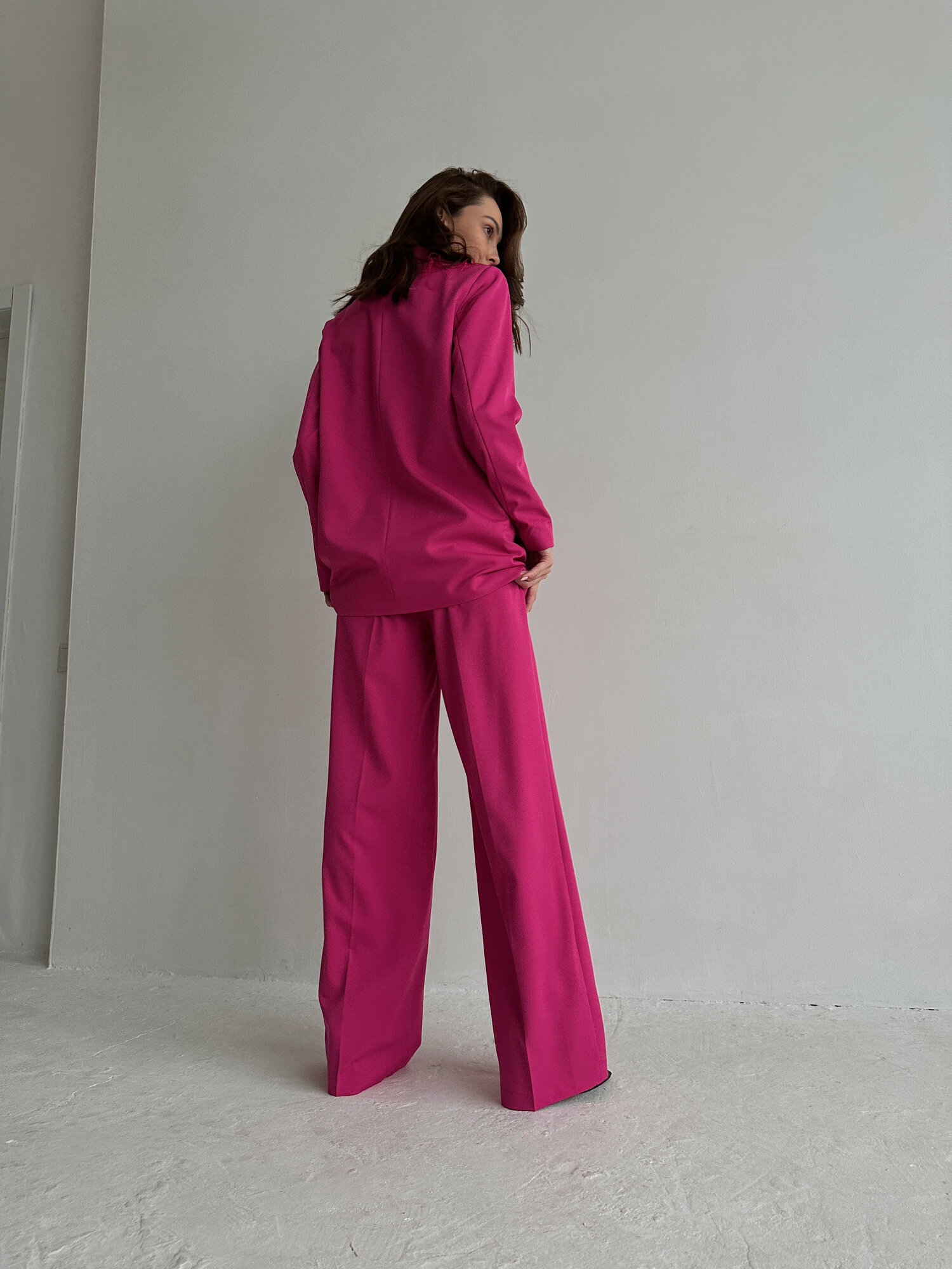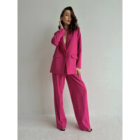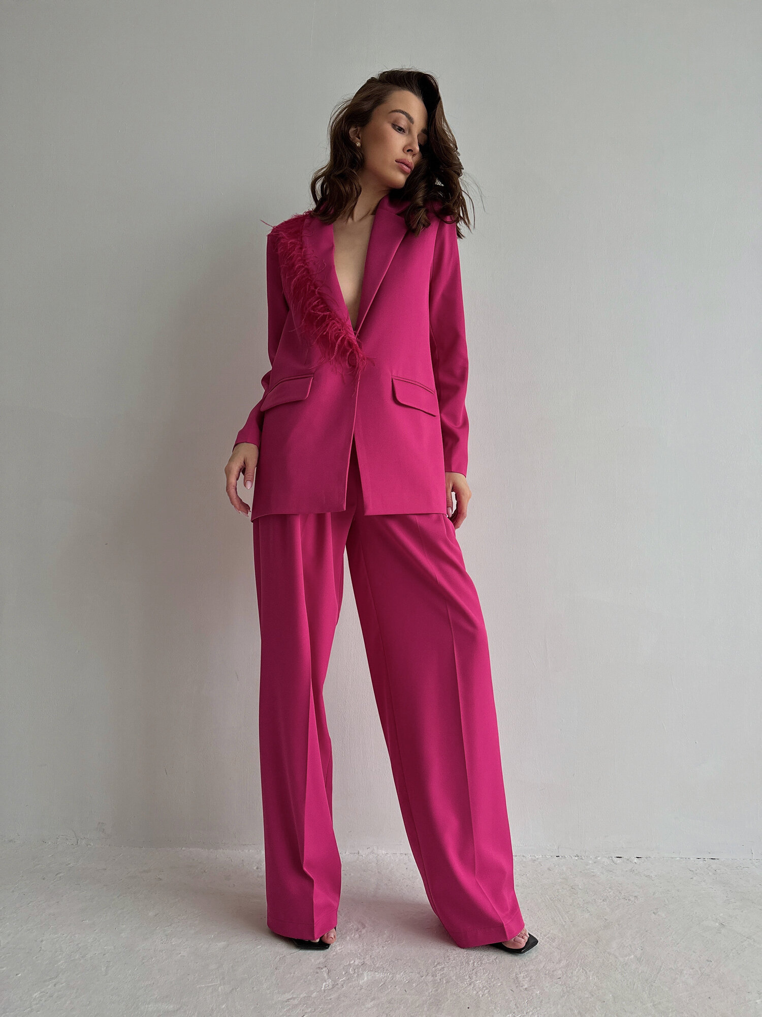 Купить Костюм классический MATRESHKA_LOVE Комплект женский деловой нарядный с перьями, размер 44, фуксия с доставкой по всей России.