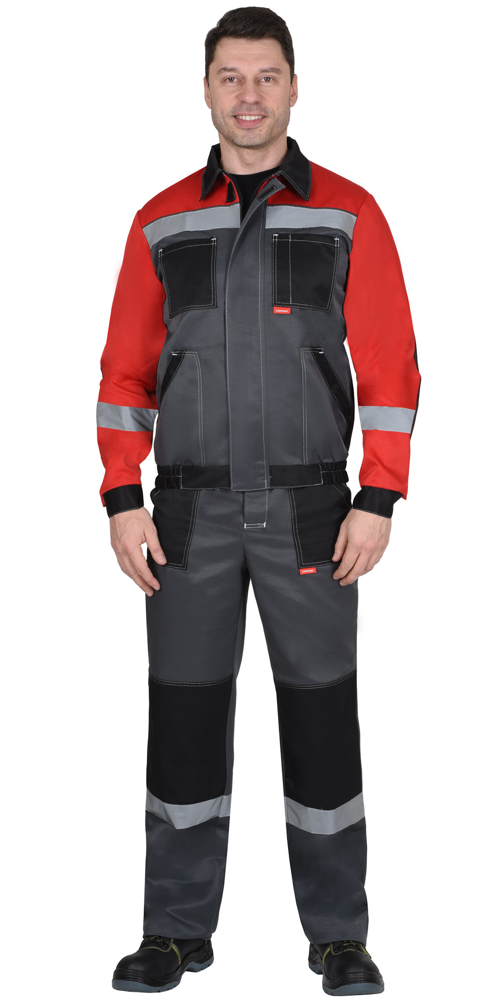 Костюм «Лигор-2» куртка короткая, брюки темно-серый с красным и черным, СОП 50 мм р. 52-54/170-176 / Костюм рабочий мужской / Костюм рабочий: сравнение цен, характеристики, фото, актуальное наличие и цены.