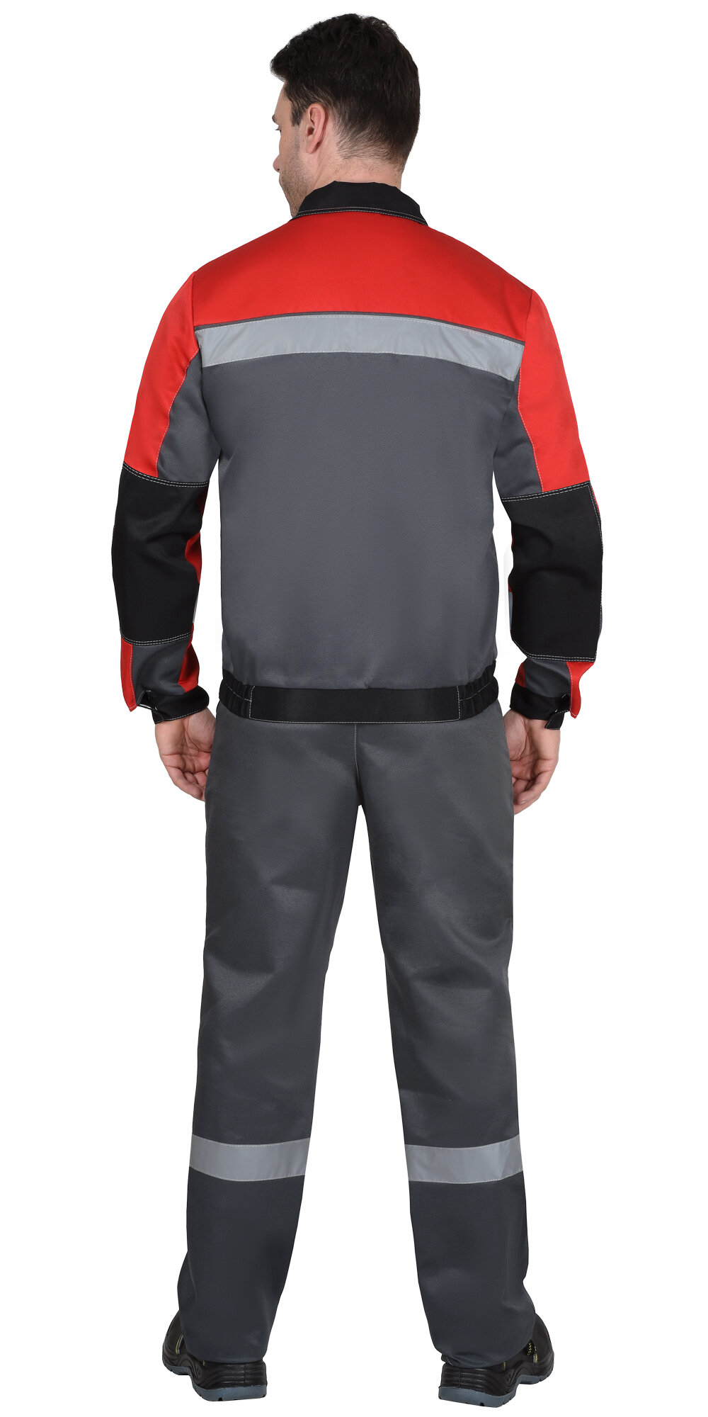 Костюм «Лигор-2» куртка короткая, брюки темно-серый с красным и черным, СОП 50 мм р. 52-54/170-176 / Костюм рабочий мужской / Костюм рабочий