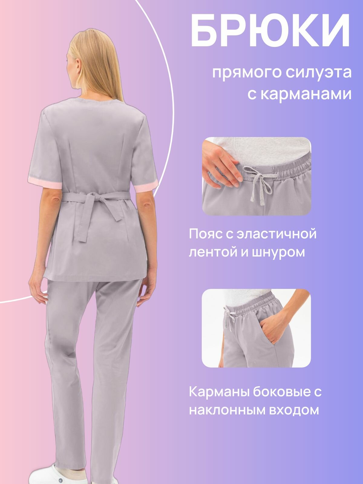 Костюм медицинский женский «Сандра» серый светло-розовый, размер 52, рост 170-176 см: сравнение цен, характеристики, фото, актуальное наличие и цены.