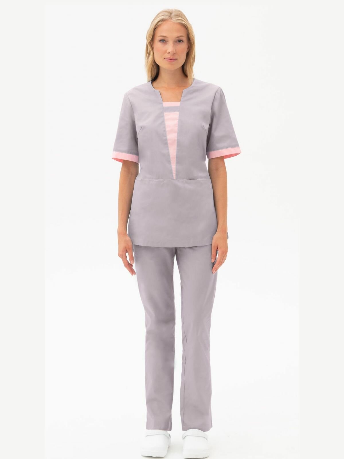 Купить Костюм медицинский женский «Сандра» серый светло-розовый, размер 52, рост 170-176 см с доставкой по всей России.