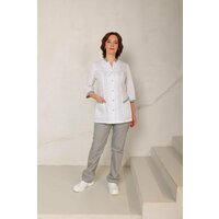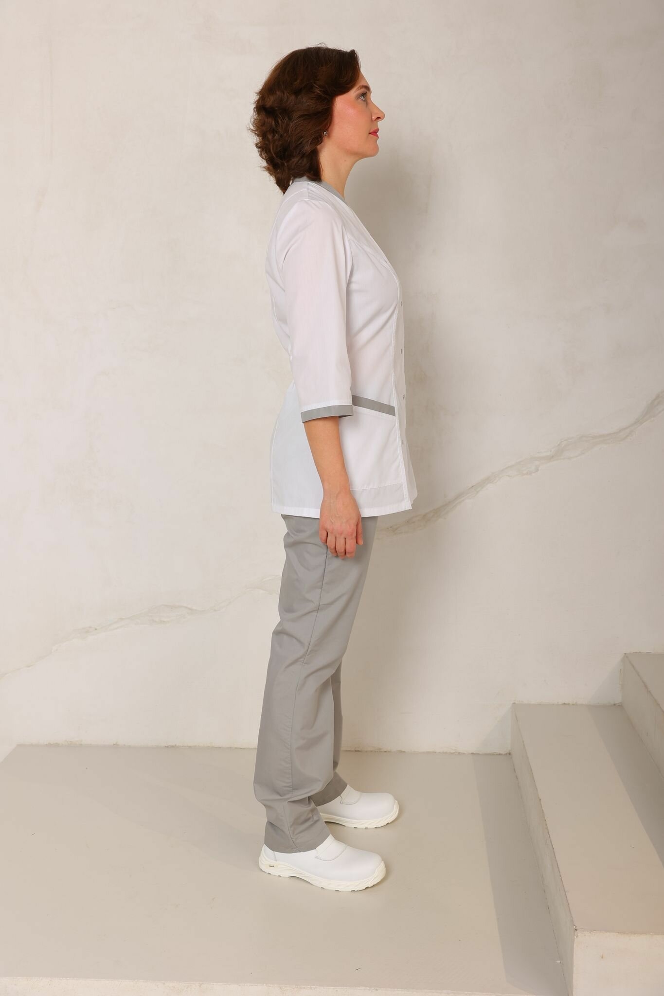 Костюм медицинский женский вилан/Униформа для сотрудников, белая, отделка серая, тк. Тиси, размер 40-42, рост 158-164 см