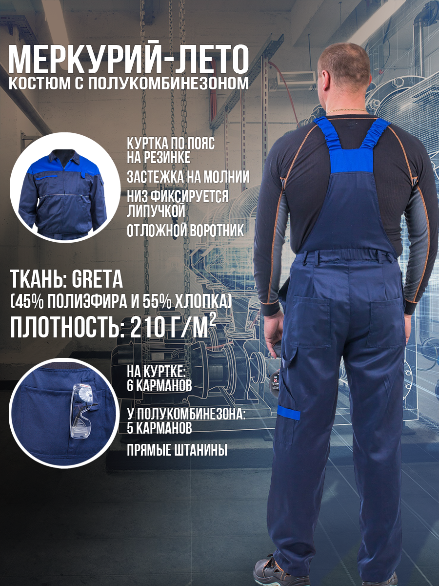 Костюм «Меркурий лето-Анталекс» синий с полукомбинезоном. Размер:88-92. Рост:182-188: сравнение цен, характеристики, фото, актуальное наличие и цены.