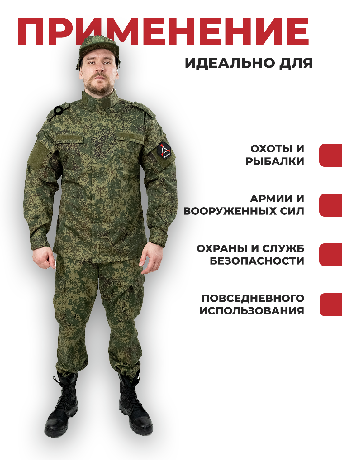 Летний костюм прямого кроя - часть экипировки ВКПО, ранее ВКБО (Всесезонный Комплект Полевого Обмундирования). Является уставной камуфляжной формой как для военнослужащих, так и для представителей других профессий. Состоит из куртки и брюк.