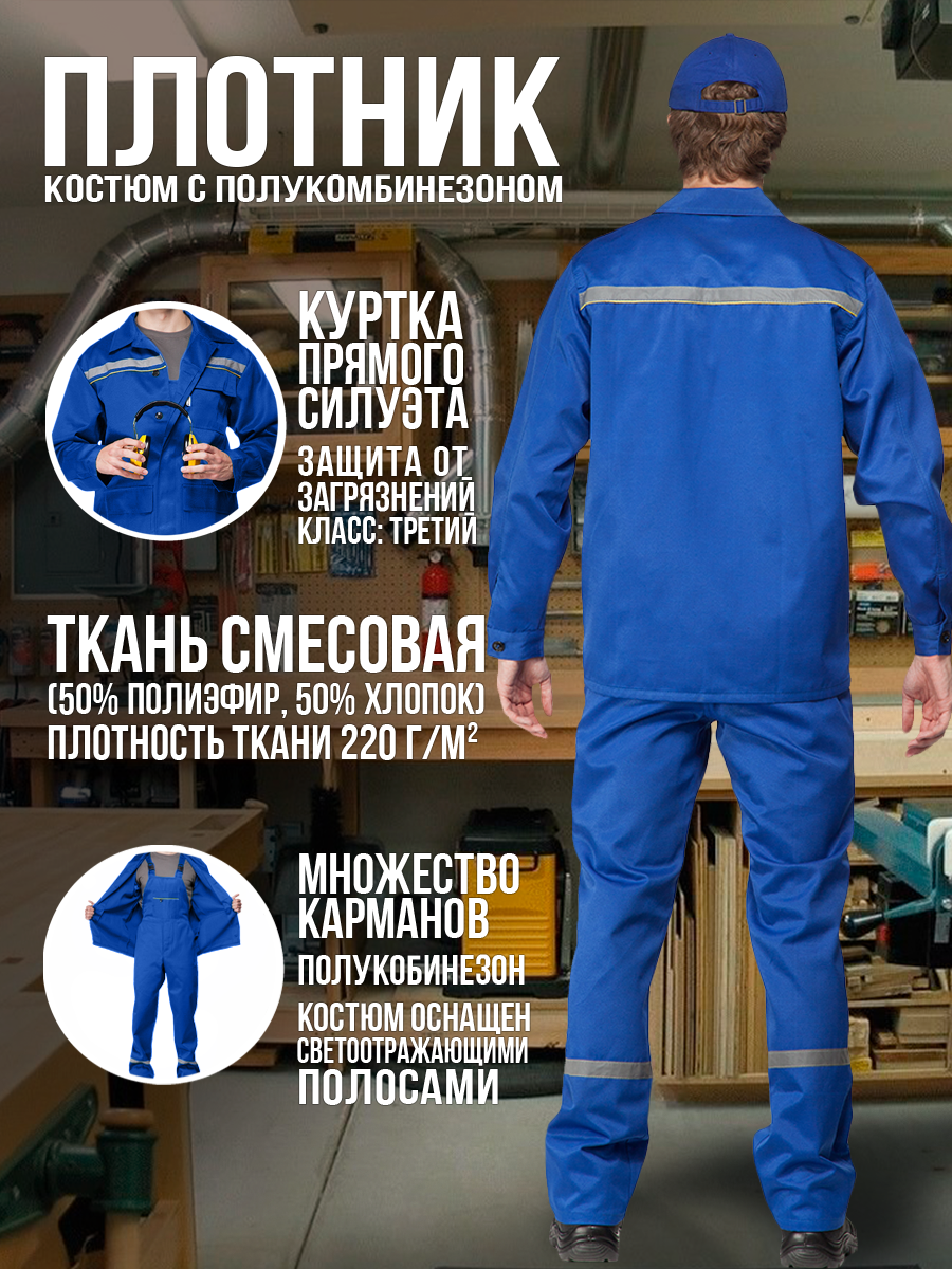 Костюм «Плотник» васильковый с полукомбинезоном: сравнение цен, характеристики, фото, актуальное наличие и цены.