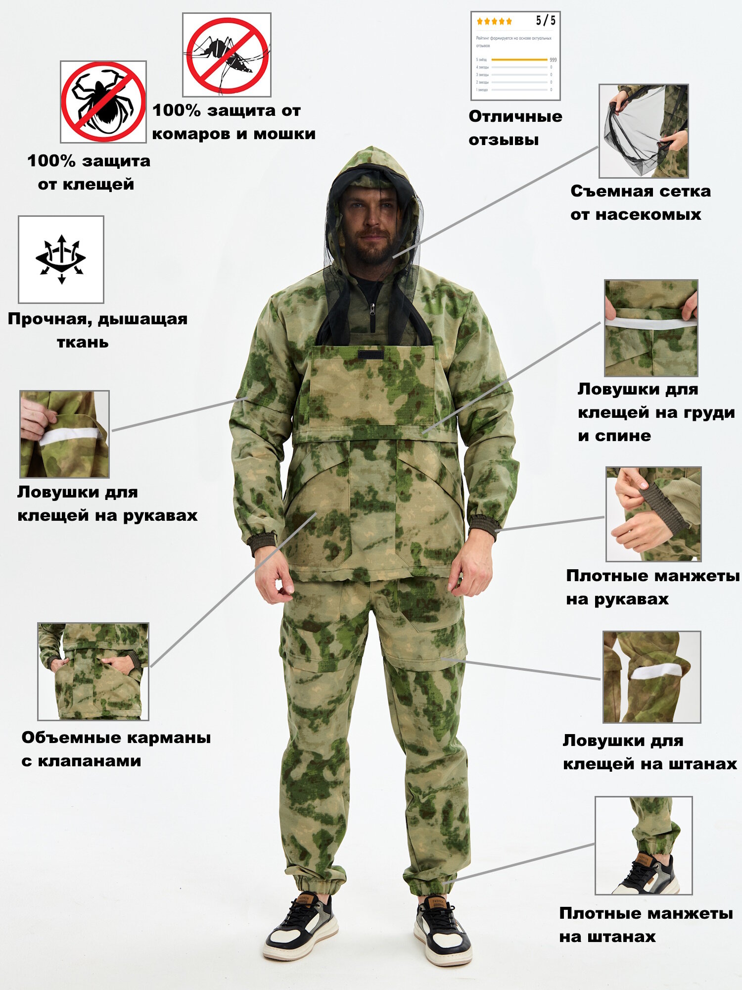 Противоклещевые ловушки на всех элементах (рукава, грудь, спина, штаны).