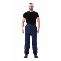 Данная модель состоит из двух частей - куртки и брюк тёмно-синей расцветки с васильковыми вставками (цвет может немного отличаться от фото). Брюки с поясом со шлёвками и гульфиком на пуговицах. Для практичности имеются верхние накладные карманы.