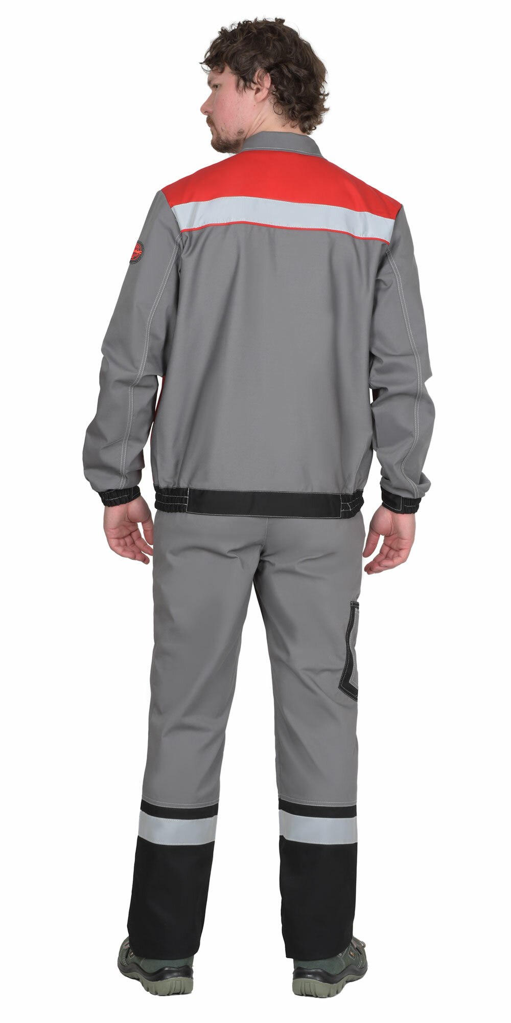 Костюм «сириус-мастер» летний: куртка короткая, брюки, средне-серый с красным с СОП р. 44-46/182-188 / Костюм рабочий мужской / Костюм рабочий