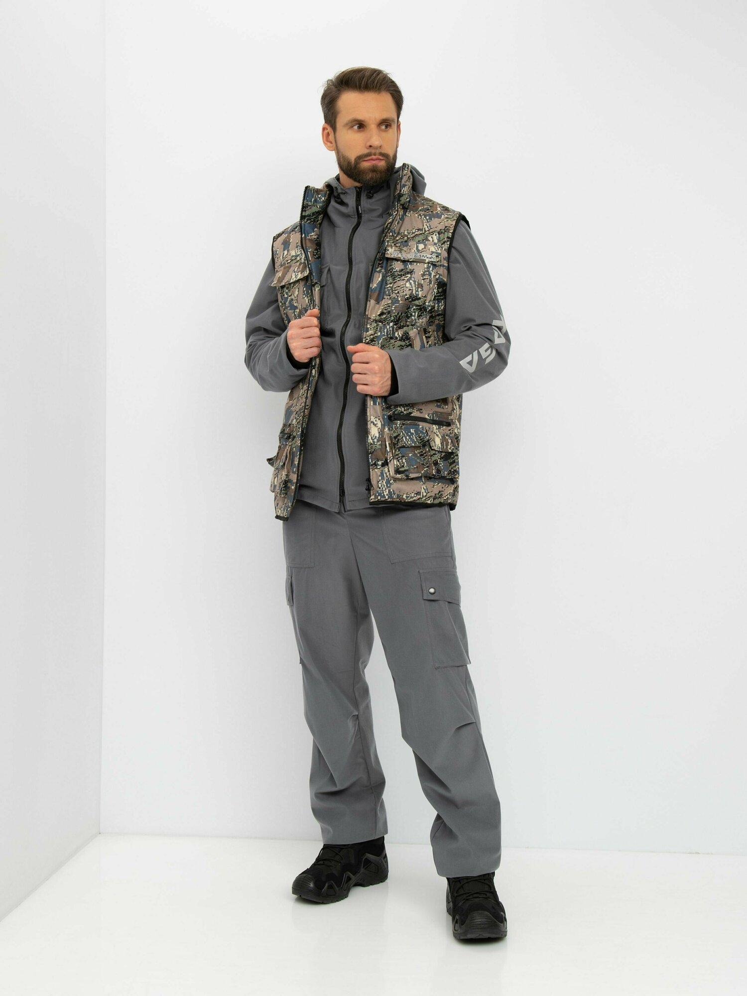 - состоит из куртки, брюк, утепленного жилета;