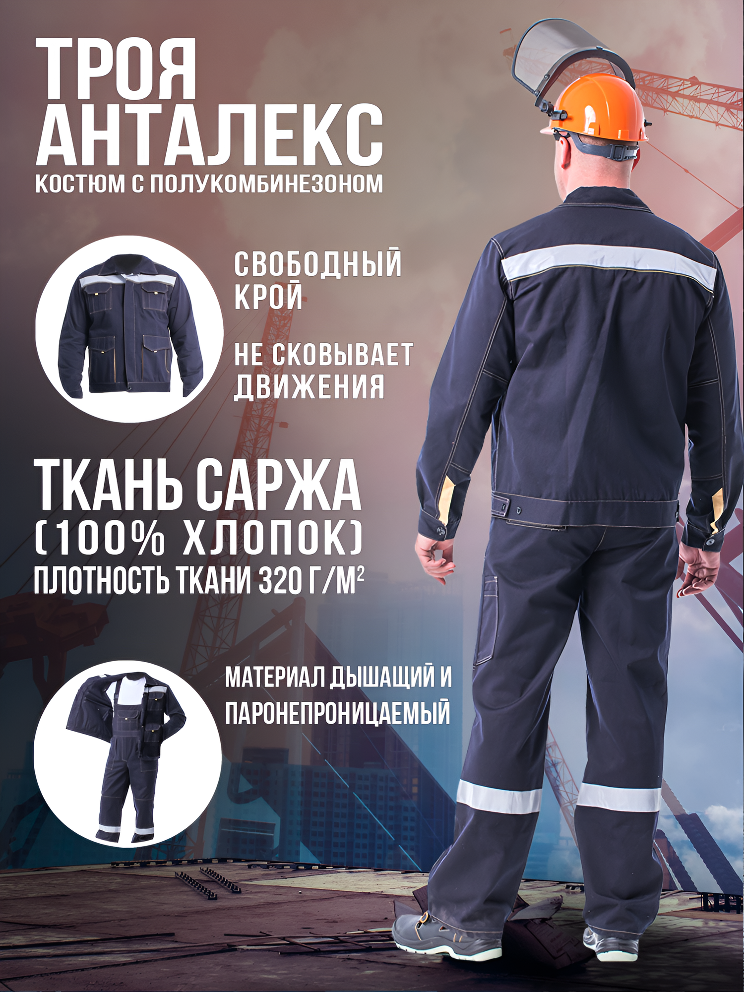 Костюм «троя-анталекс» тёмно-синий с полукомбинезоном. Размер:104-108. Рост:182-188: сравнение цен, характеристики, фото, актуальное наличие и цены.