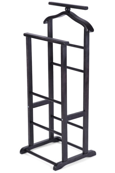 Если у вас еще нет костюмной вешалки, то не сомневайтесь в полезности ее приобретения. Данная модель в отличие от модели В6Н дополнена второй стойкой, на которой расположена перекладина для брюк, это может быть иногда удобнее. Вешалка полностью изготовлена из массива дерева, имеет классический вид, надежна и экономична. Необычную форму плечиков позволила воспроизвести технология гнуто-клееного шпона. Все детали вешалки защищены лаковым покрытием. За вешалкой очень просто ухаживать. Вешалка компактно упакована, имеет небольшой вес, так что ее можно транспортировать даже в общественном транспорте, не говоря о личном или грузовом.