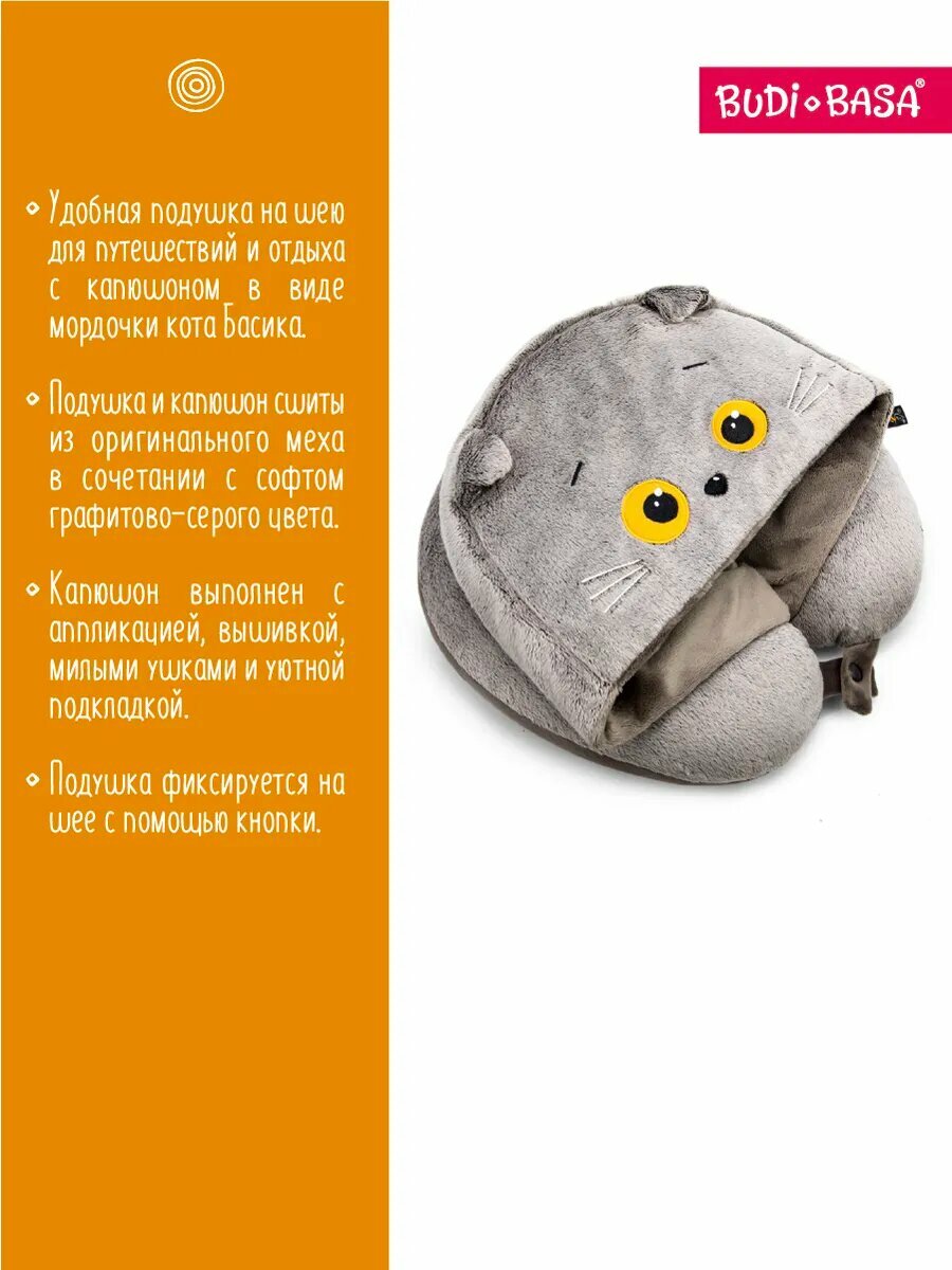Купить Кот Басик дорожная подушка на шею с капюшоном BUDI BASA мягкая игрушка 32 см с доставкой по всей России.