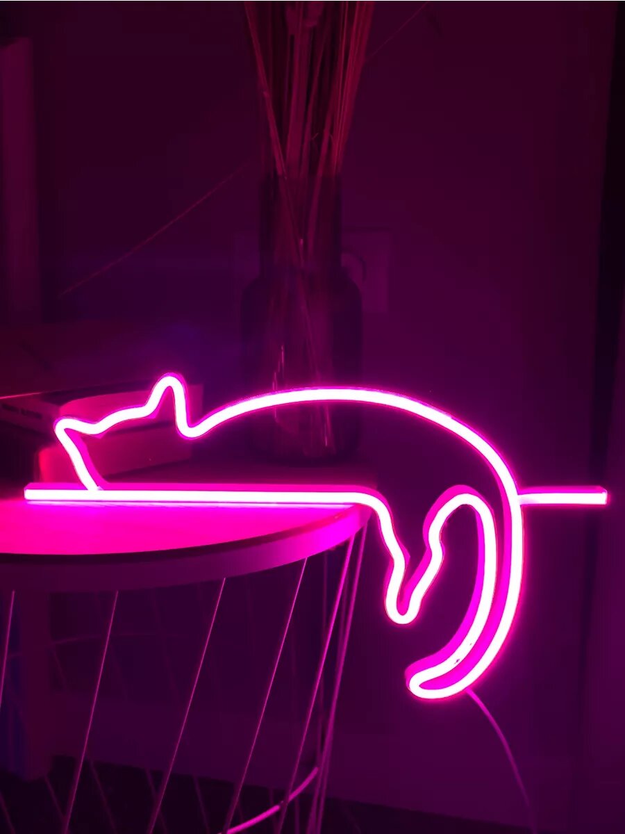Неоновый декоративный светильник в виде кошки станет отличным выбором для тех, кто ценит оригинальность, стиль и комфорт в своём доме. Он подойдёт для гостиной, спальни, детской комнаты или любого другого помещения, где требуется яркое и необычное освещение. Этот светильник можно использовать в качестве неоновой вывески или декоративного элемента на стене в салоне красоты, кафе или магазине. Он добавит яркости и оригинальности в интерьер и создаст уютную атмосферу.