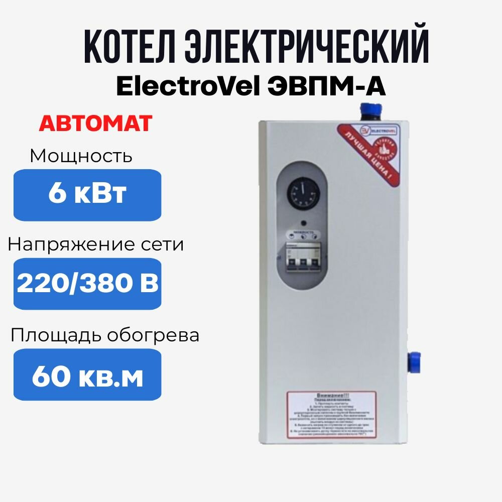 Котел электрический ElectroVel ЭВПМ-а мощность 6 кВт, одноконтурный, белый, настенный: сравнение цен, характеристики, фото, актуальное наличие и цены.