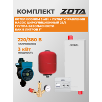 Котел электрический ZOTA Econom 3, комплект, насос 25/4, группа безопасности, бак 8 литров