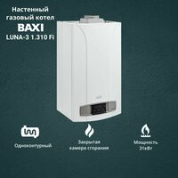 Газовый котел Baxi LUNA 3 1.310 Fi представляет собой настенный одноконтурный турбированный высокопроизводительный котёл мощностью 31 кВт третьего поколения, который обеспечивает максимальный комфорт под вашим управлением. Передовая электронная плата, самодиагностика и возможность недельного программирования гарантируют высокую надежность работы котла, а также простоту использования и обслуживания. Газовый котёл отопления Baxi LUNA-3 1.310 Fi оборудован широким жидкокристаллическим дисплеем, на котором отображается вся информация о работе котла. ✔Одноконтурный котёл Одноконтурный котёл - это котёл, имеющий только один - отопительный - контур. Такой котёл непосредственно выполняет только одну функцию – отопление. Система работы одноконтурного газового котла несложная, поэтому его будет проще починить. Одноконтурный котёл Baxi LUNA 3 1.310 Fi целесообразно приобретать, если в вашем доме потребуется большой объём горячей воды для одновременного обслуживания нескольких точек водоразбора (кухни, душа, ванны), поскольку двухконтурный аппарат способен обеспечить систему лишь небольшим объёмом горячей воды. В дополнение к одноконтурному котлу можно установить бойлер косвенного нагрева, который обеспечит горячее водоснабжение в доме. Также причиной, по которой которой имеет смысл покупить одноконтурный котёл Baxi LUNA 3 1.310 Fi, является очень "жёсткая" водопроводная вода. Двухконтурный котёл использовать в этом случае не рекомендуется, так как его теплообменник будет быстро покрываться накипью, приходить в негодность и нуждаться в постоянной замене. ✔Закрытая камера сгорания Газовый котёл Baxi LUNA 3 1.310 Fi является турбированным, то есть оснащён закрытой камерой. Он не требует организации дымохода с естественной тягой и может быть установлен в жилой части дома, например, в санузле или в коридоре, что позволяет актуально для домов с небольшой площадью, где ценится каждый сантиметр. Продукты сгорания и приток воздуха для горения осуществляется посредством установленного в котле вентилятора (турбины) через систему коаксиальных дымоходных труб ("труба в трубе"). Отработанный газ уходит через трубку, со всех сторон охлаждаемый холодными свежими воздушными массами. Коаксиальный дымоход может быть выведен на улицу как горизонтально через стену, так и вертикально через крышу. Турбированный котёл Бакси LUNA 3 1.310 Fi более надёжен и безопасен, поскольку забор воздуха для горения осуществляется не из помещения, где установлен котёл. Котлы работают несколько громче (из-за шума вентилятора, установленного в котле), однако имеют несколько более высокий КПД по сравнению с атмосферными котлами. При выборе котла с закрытой камерой сгорания убедитесь, что в вашем доме нет постоянных перебоев с электричеством - они могут вызвать нестабильную работу системы отопления. Особенности газовой системы Непрерывная электронная модуляция пламени в режимах отопления и ГВС; Котлы адаптированы к российским условиям. Устойчиво работают при понижении входного давления природного газа до 5 мбар; Рассекатели пламени на горелке сделаны из нержавеющей стали; Возможна перенастройка для работы на сжиженном газе. Особенности гидравлической системы Турбинный датчик протока горячей воды (расходомер); Энергосберегающий циркуляционный насос с автоматическим воздухоотводчиком; Перв