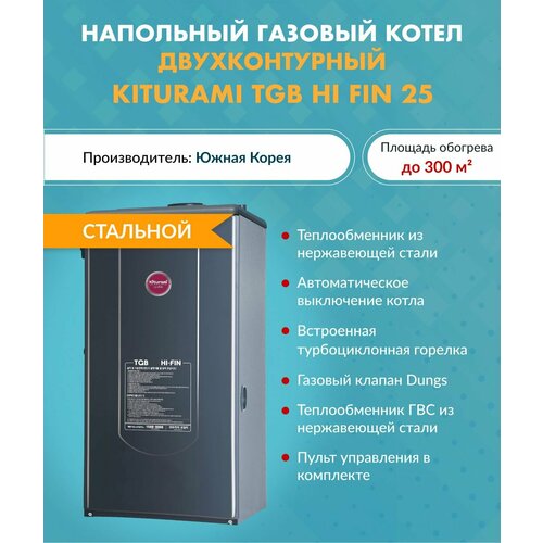 Газовый напольный котел KITURAMI TGB HiFin 25 Turbo двухконтурный, с комплектом дымохода