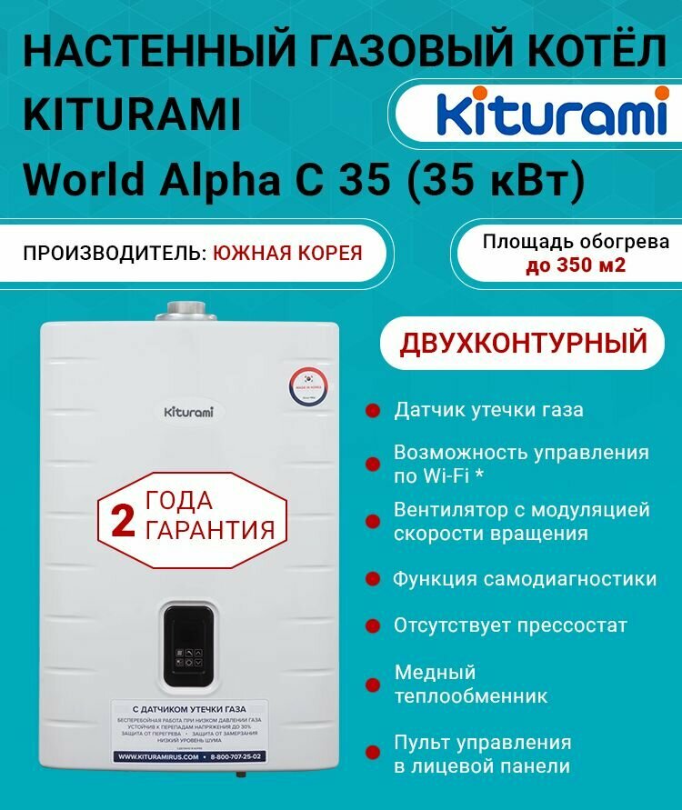 Двухконтурный котел с датчиком утечки газа, двухуровневым теплообменником из меди и алюминия, встроенной панелью управления