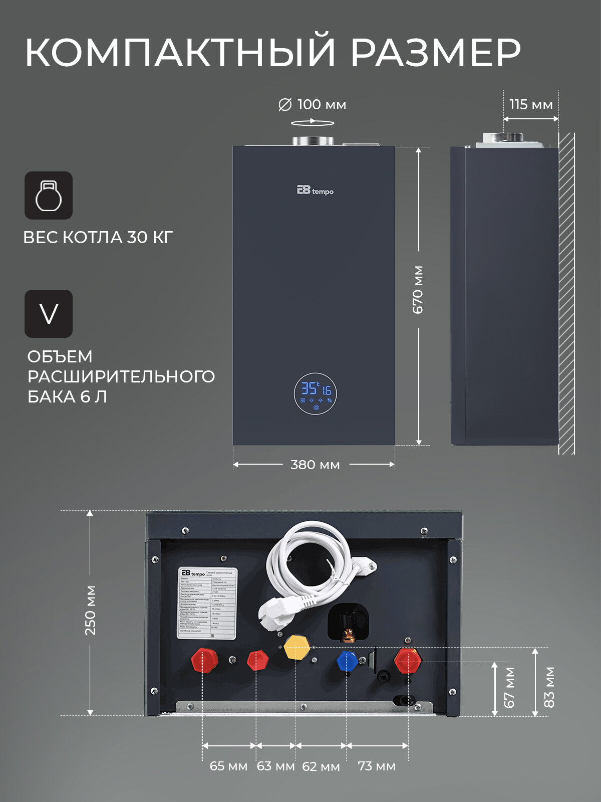 | Особенности | воздухоотводчик, встроенный расширительный бак, встроенный циркуляционный насос, манометр |