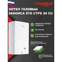 Купить Котел газовый Fondital MINORCA PLUS CTFS 24 CU (250 кв. м) двухконтурный (2х), 25,5 кВт мощность, настенный, с закрытой камерой сгорания, для отопления, водяного теплого пола, горячей воды, ГВС, водоснабжения частного жилом дома, дачи, квартиры, конвекционный 230 В, размер 400 х700 х250 мм, проточный, турбированный, водогрейный, на сжиженном, природном, магистральном газе, от газового баллона, бытовой, итальянский, расширительный бачок 6 литров, параметры, закрытого типа, с принудительной тягой, ЖК-дисплей, производство- российские, традиционные, отапливаемая площадь, на стену, циркуляционный (Фондитал Минорка, Фондиталь) в магазине Сантехмастер недорого.