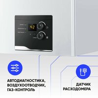 | Особенности | воздухоотводчик, встроенный расширительный бак, встроенный циркуляционный насос, манометр, предохранительный клапан, термометр |