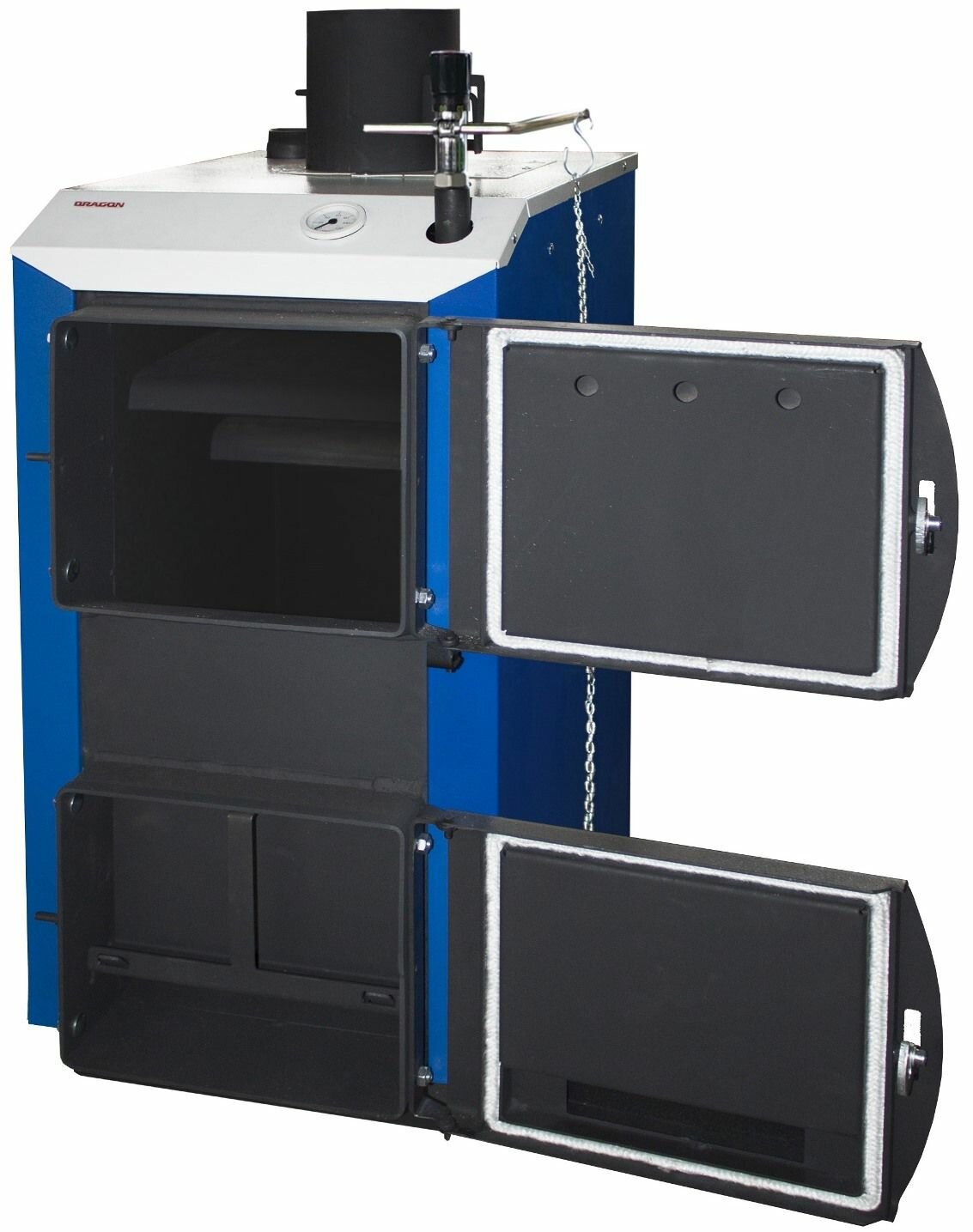 - Дверки твердотопливных котлов драгон сконструированы максимально удобно для розжига и загрузки топлива. А особая конструкция теплообменника позволяет осуществлять стопроцентную чистку внутренних конвекционных каналов и камеры сгорания.