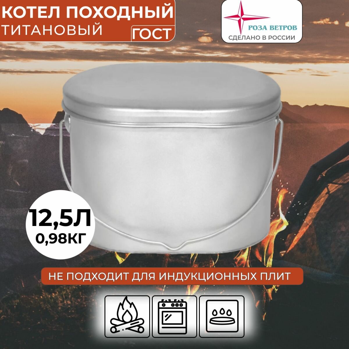 Купить Котелок походный туристический 12,5 л титан Роза ветров с доставкой по всей России. Котелок походный туристический 12,5 л титан Роза ветров: сравнение цен, характеристики, фото, актуальное наличие и цены.