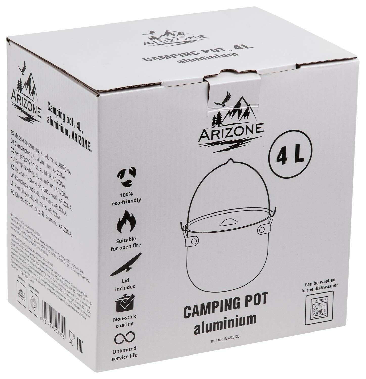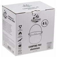 Котелок туристический ARIZONE (47-220135) расчитан на 4 л, изготовлен из пищевого алюминия и обладает высокой прочностью и долговечностью. Посуда из пищевого алюминия больше всего подходит для приготовления пищи на плитах, кострах и горелках. Котелок имеет удобную ручку для подвешивания над костром и переноски.