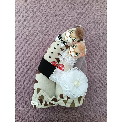 Подарок на свадьбу или годовщину свадьбы. Неразлучники станут символичным подарком-пожеланием долгой совместной жизни. Пара неразлучников кот и кошечка из льна, наполнитель - холлофайбер. Расписаны акриловыми и масляными красками. Для украшения использованы ткань, бусины, стразы, ленты, металлические подвески, деревянный декор. Это ручная работа, поэтому котики могут немного отличаться. Обязательно повторяется цвет волос и расцветка основных тканей в декоре. Вариант оформления коробки может отличаться. Рост 24 см