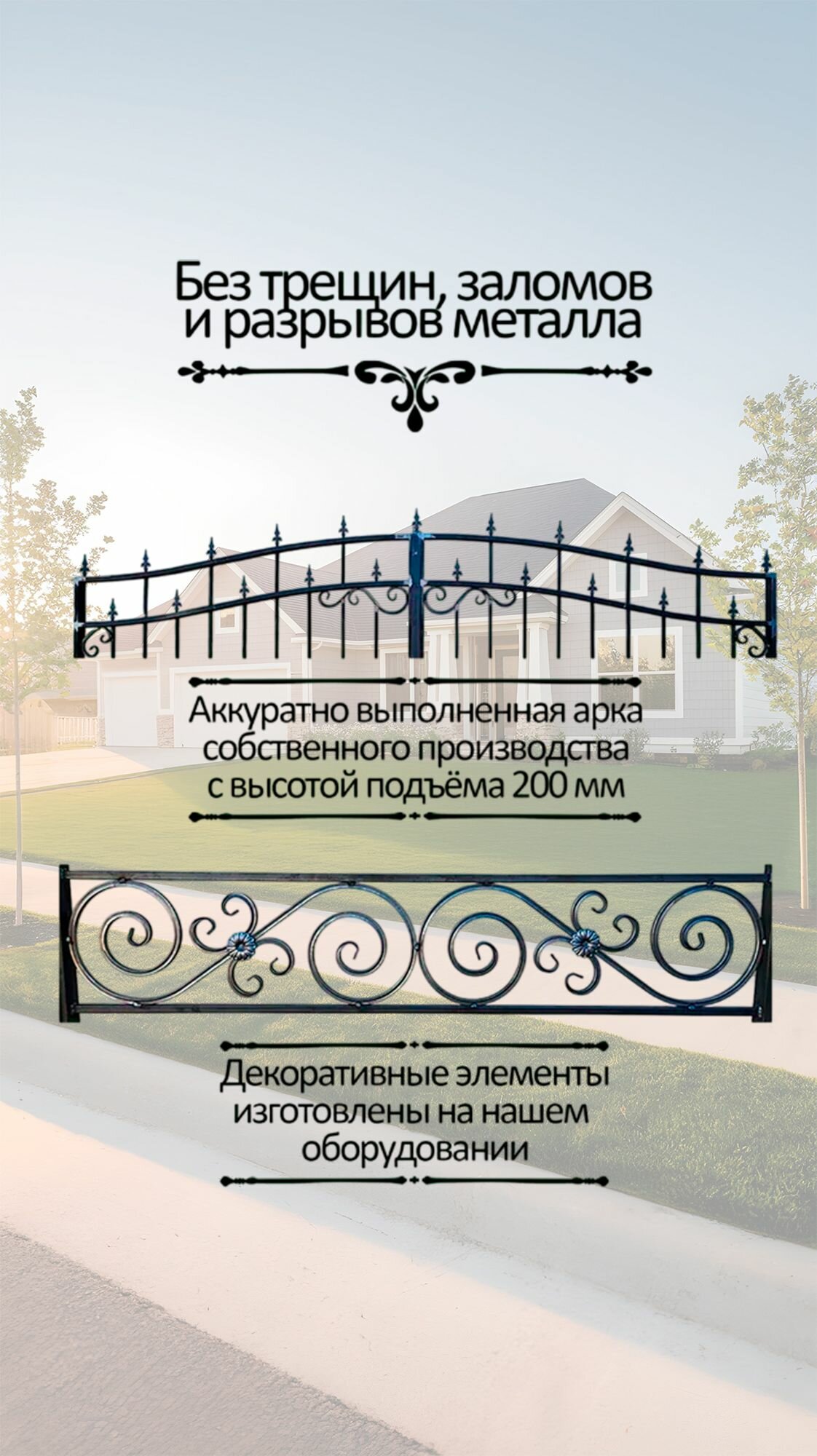 Все изделия выполняются из прочного металла, что гарантирует долговечность и устойчивость к нагрузкам. Комплект поставляется без окраски, чтобы вы могли самостоятельно выбрать идеальный вариант покрытия, подходящий под стиль забора, дома и ваши предпочтения.