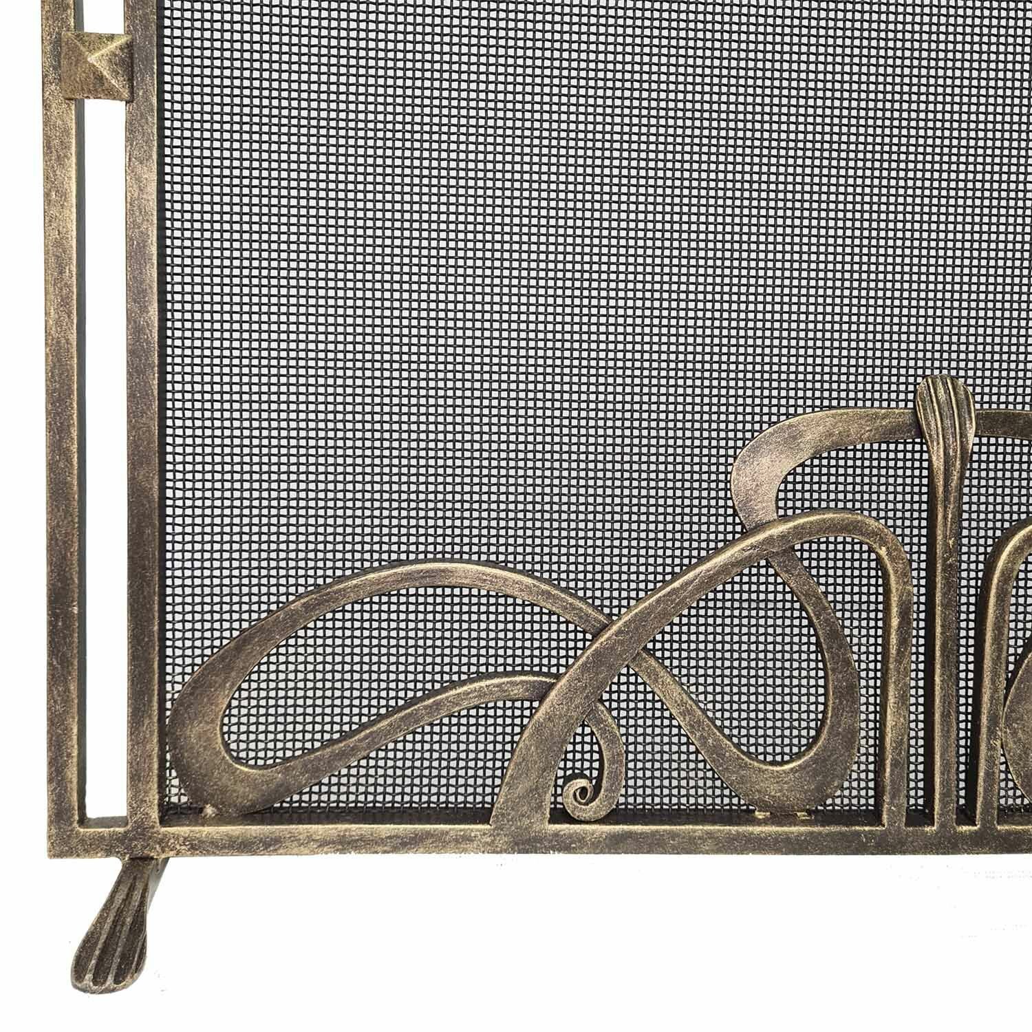 Защитный кованый экран для камина или печи, в цвете бронза защитит ваш дом искр. А так же животных и детей.