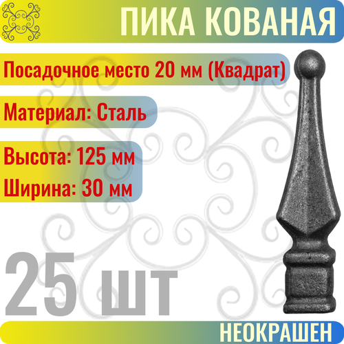 Кованый элемент Пика литая 125х30 мм Посадочное место 20 мм квадрат — 25 шт: сравнение цен, характеристики, фото, актуальное наличие и цены.