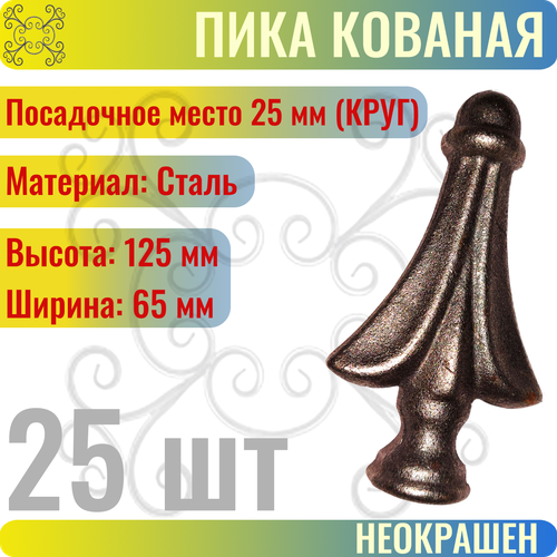 Кованый элемент пика литая 125х65 мм Посадочное место 25 мм круг — 25 шт: сравнение цен, характеристики, фото, актуальное наличие и цены.
